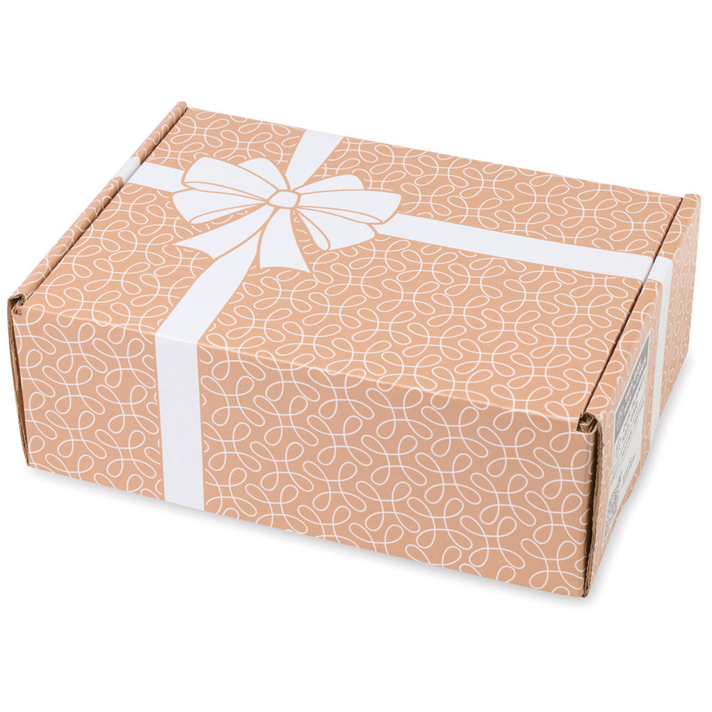 A fun, festive design makes this Gemline Kraft Medium Box Mailer a must-have for sending out corporate gifts this holiday season. Adding your company's custom logo or design will make a big impact on customers, clients, and colleagues alike. Made from recycled materials, this box measures 13" X 9" X 3.75" when assembled.Highlights