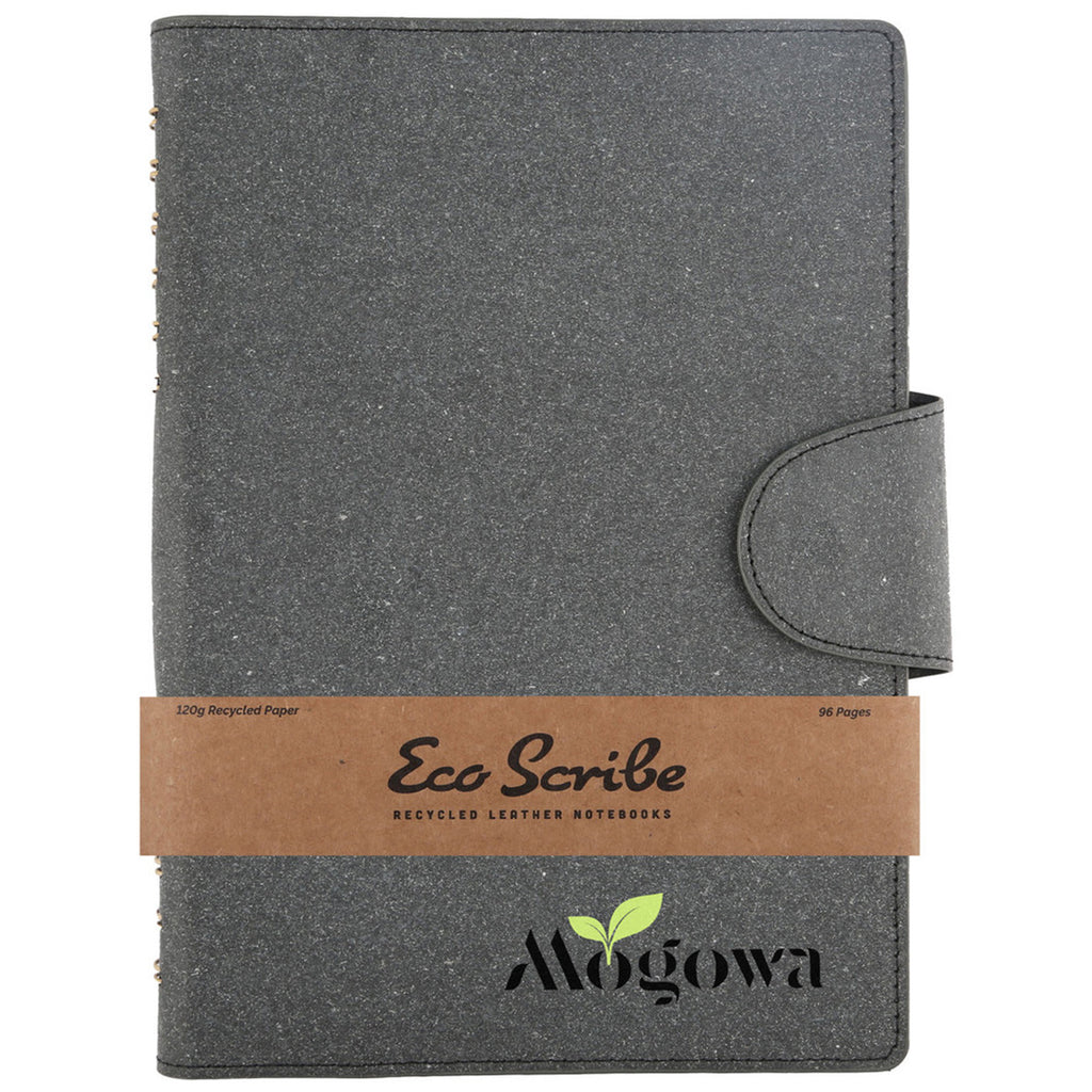 Add a corporate logo to the Handstands Black EcoScribe Ring Bound Notebook as a gift at conferences or networking events. This gorgeous notebook combines sophistication and sustainability, with recycled paper and recycled leather in a spiral ring design. It is ideal for students, executives, and everyone in between. Order today.The minimum order for this product is 50 pieces.