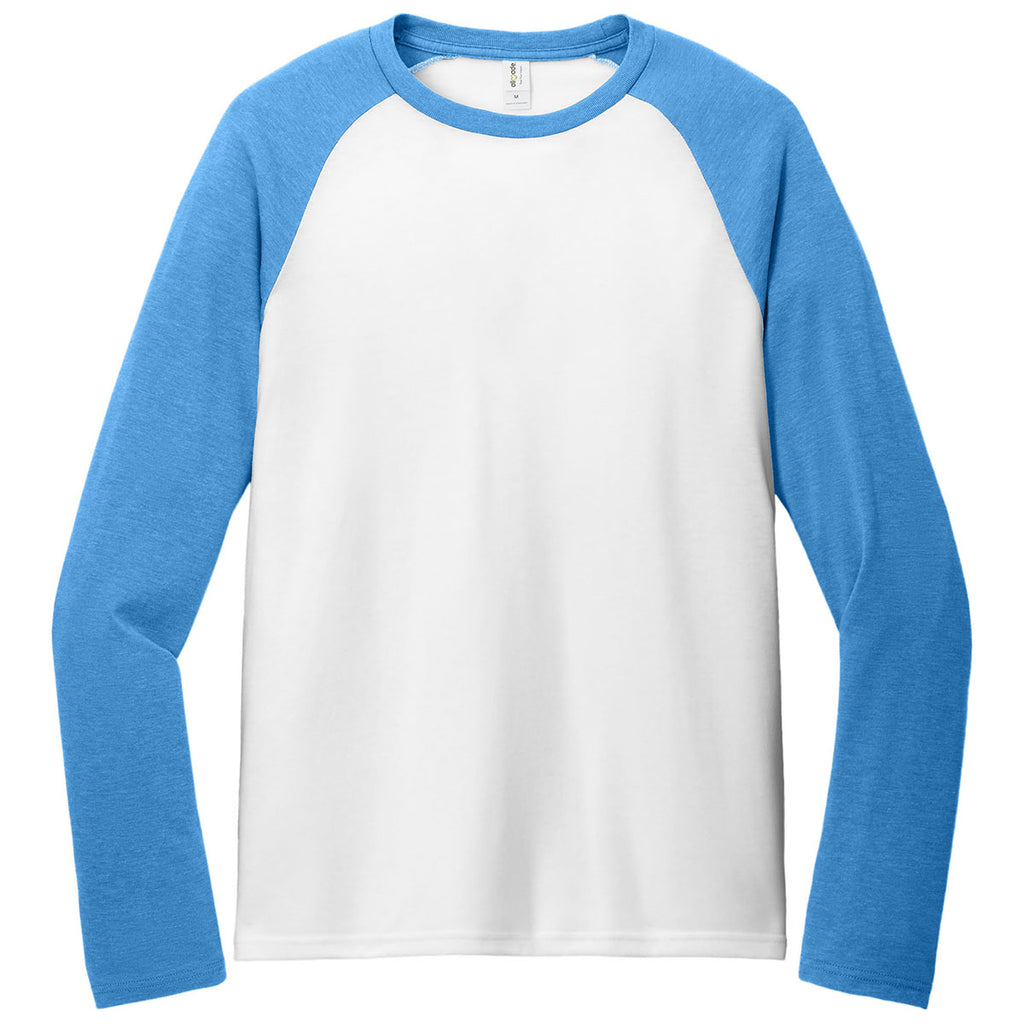 Allmade Unisex Azure Blue/Bright White Tri-Blend Long Sleeve Colorblock Raglan