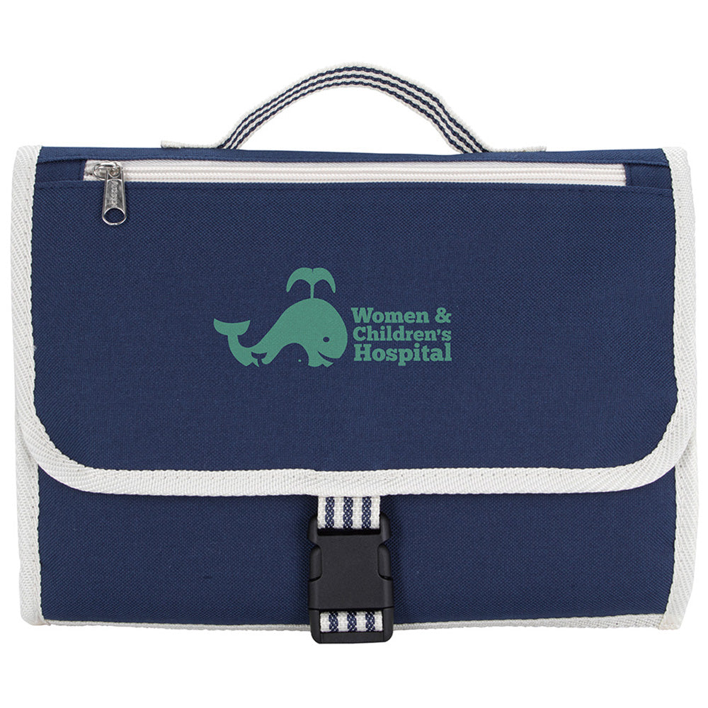 Make things easier with a custom Atchison Navy Stripe Diaper Changing Travel Pouch/Mat. Changing a diaper while traveling can be a pain, but this foldable mat gives you a safe, clean surface every time. Two mesh pockets are perfect for diapers and wipes while the front pocket will hold your phone and keys. Drop this in the diaper bag and go. Great as a baby shower gift. Order now.The minimum order for this product is 50 pieces.