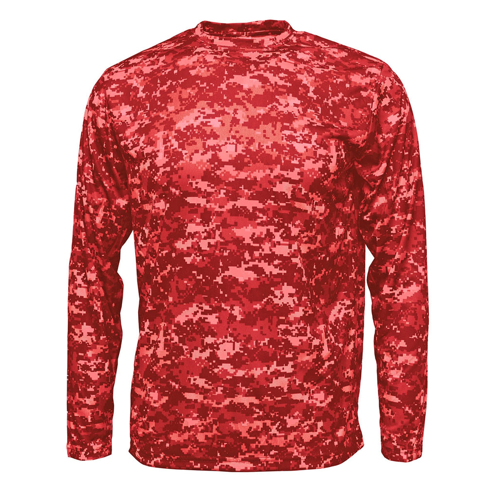 What could be more 'now' than a custom BAW Men's Red Xtreme Tek Digital Camo Long Sleeve Shirt? And what could be better than a choice of different colors? This polyester shirt will be a favorite of the men who receive it. Every time they show it off they will be showing off your logo as well. It will be worn often because the fabric is so comfortable and has moisture wicking properties so it is very absorbent. The crew neck style has double needle hems which are very popular. Don't be surprised if current and prospective customers come back and ask for a second color 'for a friend'.Highlights