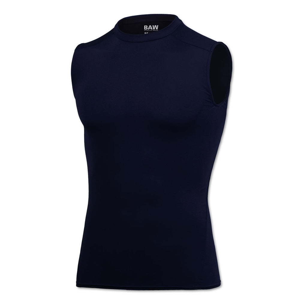 When you are thinking about the next shirt to add to your line of corporate give-aways, don't forget all the men who spend time at the gym working to improve their health. Your custom logo will look really hip when it's across the front of the BAW Men's Navy Compression Cool Tek Sleeveless Shirt. It comes in a variety of colors and is available in sizes S to 3X. You will be considered the hippest company in town! Think of all the new customers that will be calling.Highlights