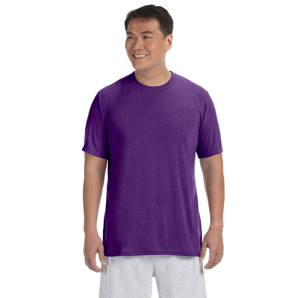 Take athletic performance to the next level by ordering the screen printed Gildan Men's Purple Performance T-Shirt for every employee on your high achieving team. Even the employees that prefer to root for the corporate softball team deserve to wear the lightweight, multi-purpose short sleeve shirts. Snag resistant fabric prevents the t-shirt from scrunching up whenever a player slides into second base. Designed with 100% polyester jersey knit, the stylish short sleeve shirt will get the other team talking about your incredible taste in fashion. Print a custom logo to take advantage of all the attention.Highlights