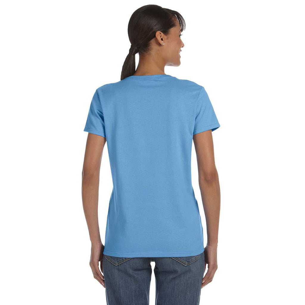 Make a lasting impression on the women that attend the next recruiting event by ordering the custom printed Gildan Women's Carolina Blue 5.3 oz. T-Shirt. Cap sleeves designed for comfort make the short sleeve shirt ideal for wearing at corporate softball tournaments. Double needle stitching throughout the t-shirt resists rips and tears to deliver superior fashion performance during outdoor recreational activities. Screen print your company logo on the large area to separate your brand from the competition. Logoed corporate apparel represents powerful marketing tools that do not put much of a dent in the annual budget.Corresponding Men's Style: Gildan Men's Carolina Blue 5.3 oz. T-Shirt