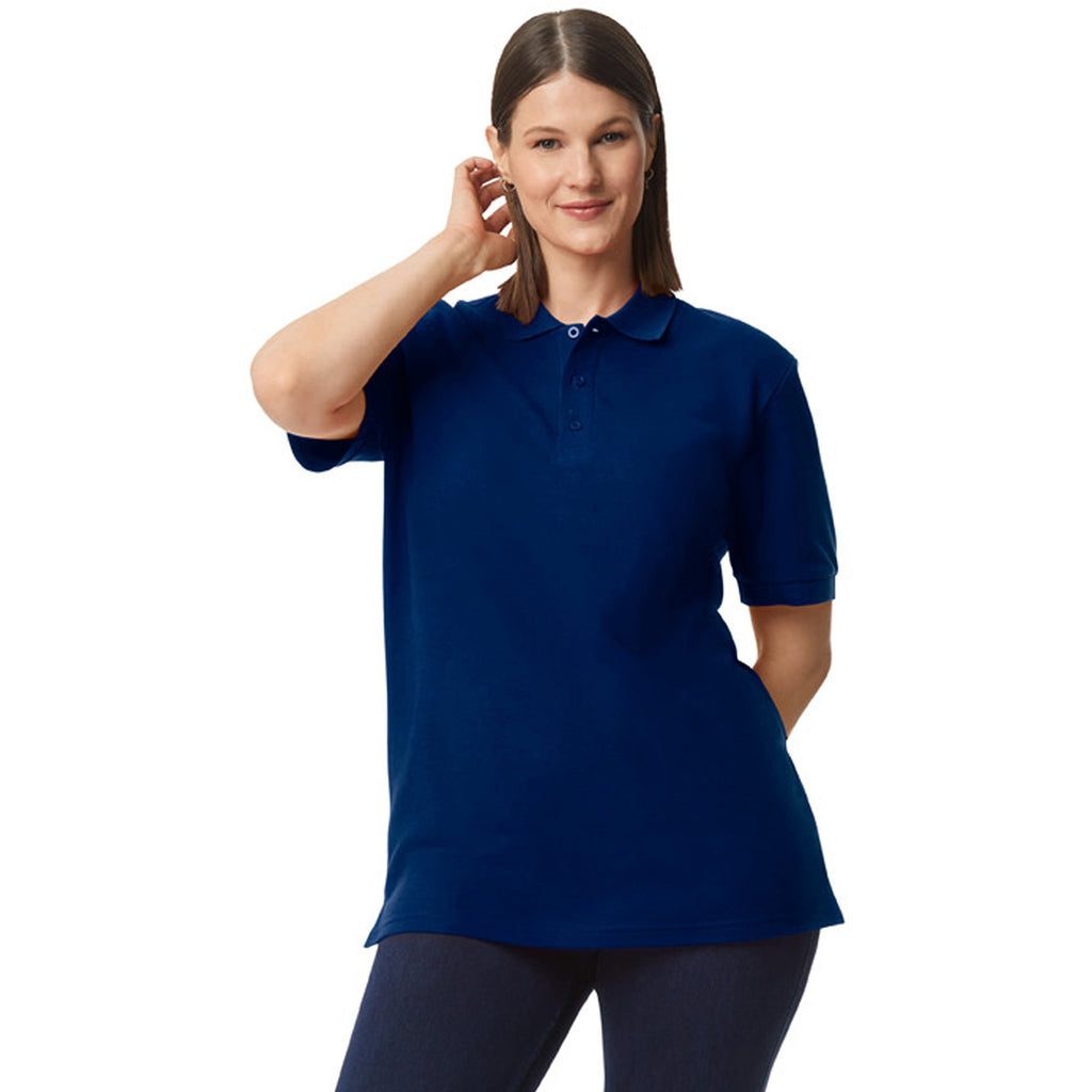 Gildan Unisex Navy Midweight Double Pique Polo with a custom embroidery is a fun way to create custom wear for everyone to enjoy. The slightly longer length offers coverage while the classic fit with side vents keeps you comfortable. Great for special events, uniforms, or even corporate wear when paired with the right slacks. Place an order today.Highlights
