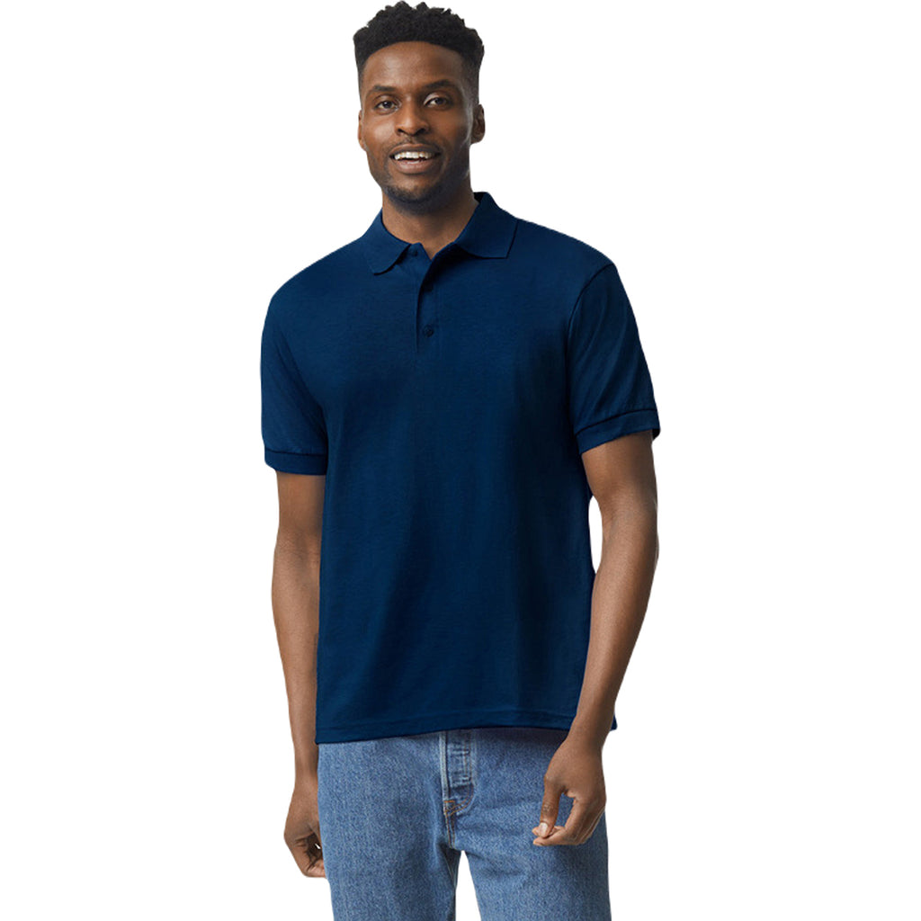 Gildan Men's Navy 6 oz. 50/50 Jersey Polo will show off your custom logo with pride. The lightweight cotton and polyester blend polo is great for the office or when hitting the links. The moisture-wicking properties keep you dry whether presenting for a meeting or playing the best round of your life. Place an order today.Highlights