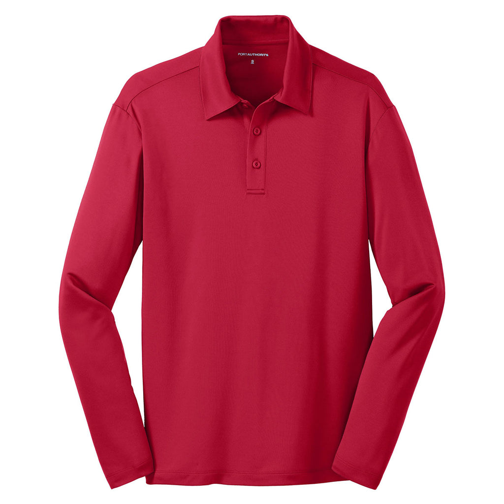 Port Authority Men's Red Silk Touch Performance Long Sleeve Polo