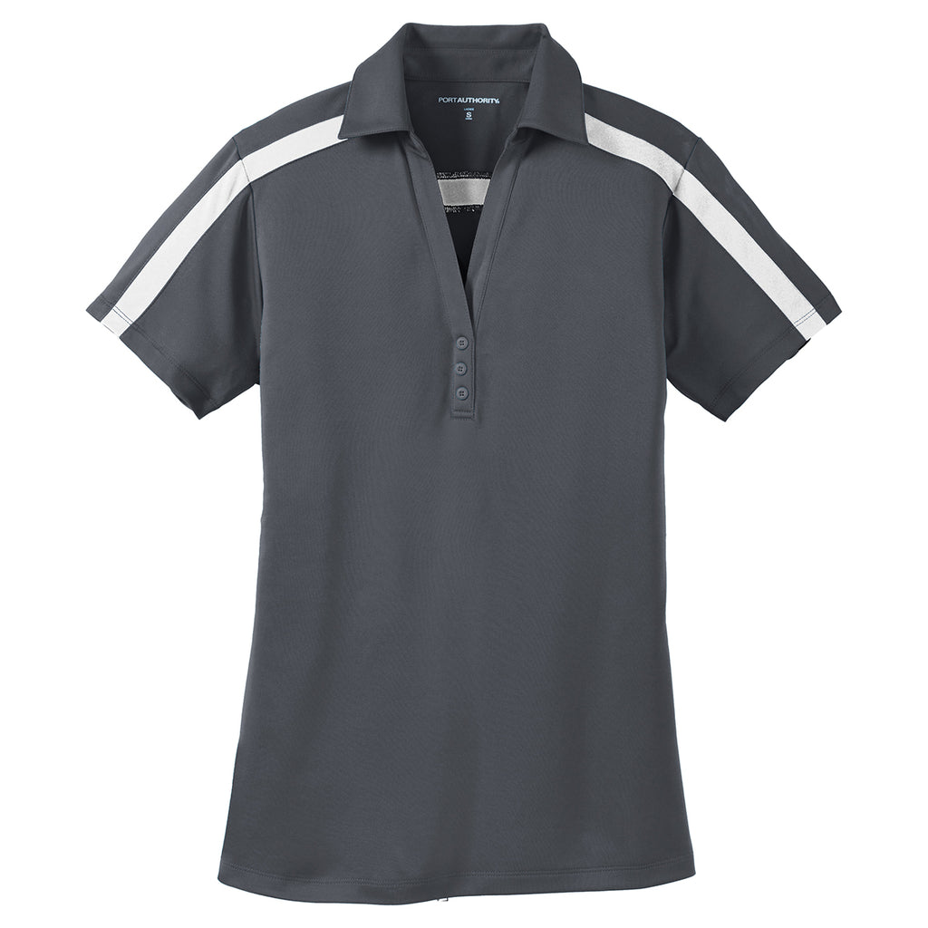What makes a polo like the Port Authority Women's Steel Grey/White Silk Touch Performance Colorblock Stripe Polo different from a T-shirt? Although both a polo and a T-shirt make great branded apparel, many people seem to remember the branded polos better than tees. Additionally, polo shirts tend to be more formal, which means they can be co-branded to suit your business environment. Polos are a step above the casual T-shirt because they're business-ready.Corresponding Men's Style: Port Authority Men's Steel Grey/White Silk Touch Performance Colorblock Stripe Polo