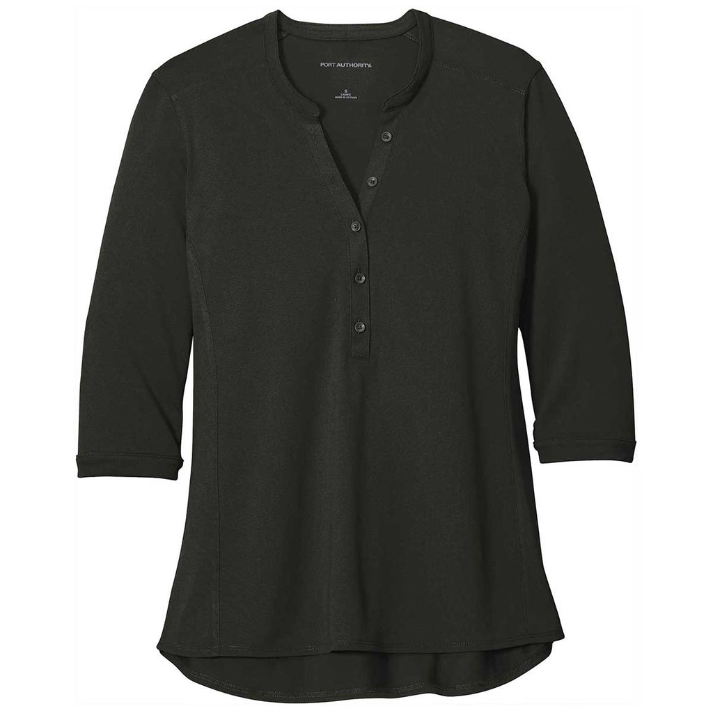Enjoy a take on the classic henley style with the Port Authority Women's Black UV Choice Pique Henley in various size and color options. This gorgeous 2/3 length sleeve shirt is must have for the weekend warrior with a custom logo of your choosing. Perfect for team events or retreats, the soft polyester pique fabric is snag resistant, moisture wicking, and has a UPF rating of 20+. The open neckline on this 5 button henley makes it a great choice as a company uniform with a custom embroidery or simply a welcome addition to your personal wardrobe. Excellent prospect as an employee gift as well.Corresponding Men's Style: Port Authority Men's Black UV Choice Pique Polo
