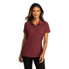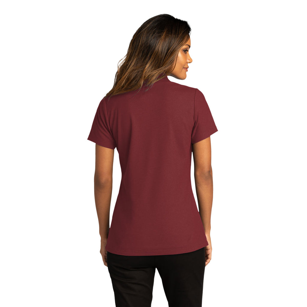 Design a custom embroidery for the Port Authority Women's Burgundy SuperPro React Polo for a look that can go from the office to dinner with friends with complete ease. This classic uniform style meets performance wear in this poly cotton polo that is ready for anything life can bring. Add a company logo to create a corporate uniform that is comfortable and convenient with stain release, snag resistance, and Easy Care qualities. The flat knit collar with five button placket makes this polo easy to layer or wear alone. Enjoy a day with friends, at work, or anywhere you please and look great while doing it.Corresponding Men's Style:Port Authority Men's Burgundy SuperPro React Polo