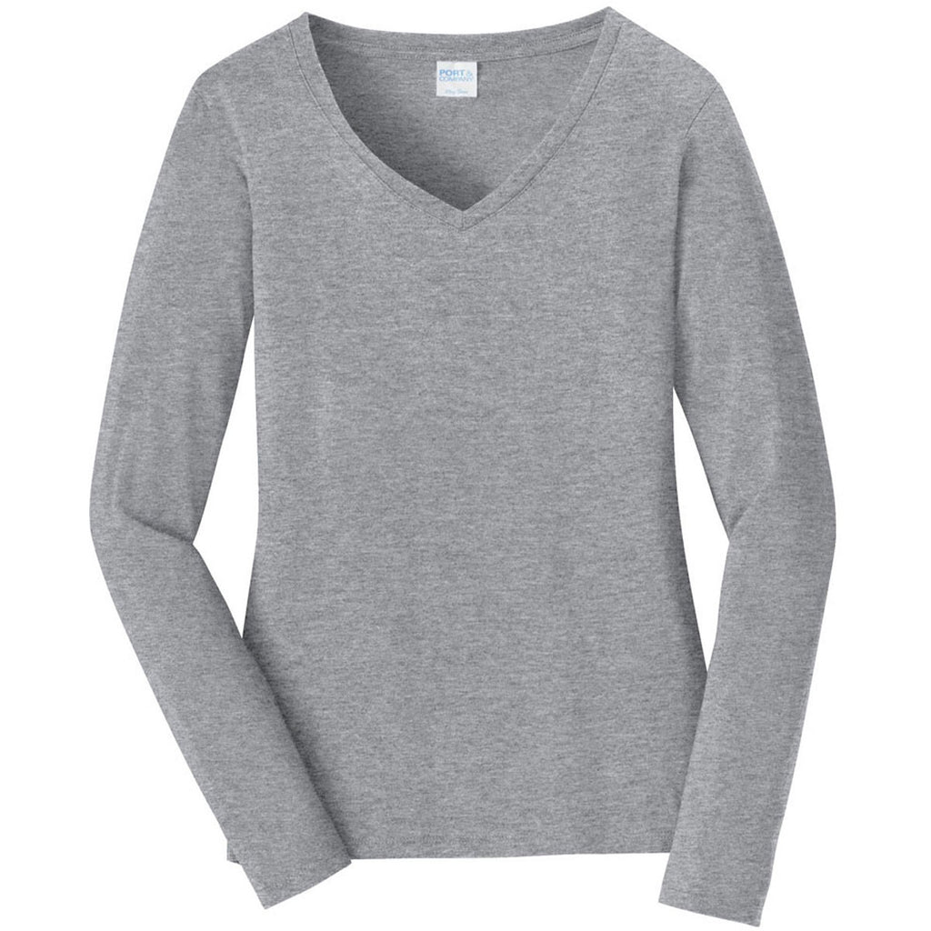 Port & Company Women's Athletic Heather Long Sleeve Fan Favorite V-Neck Tee