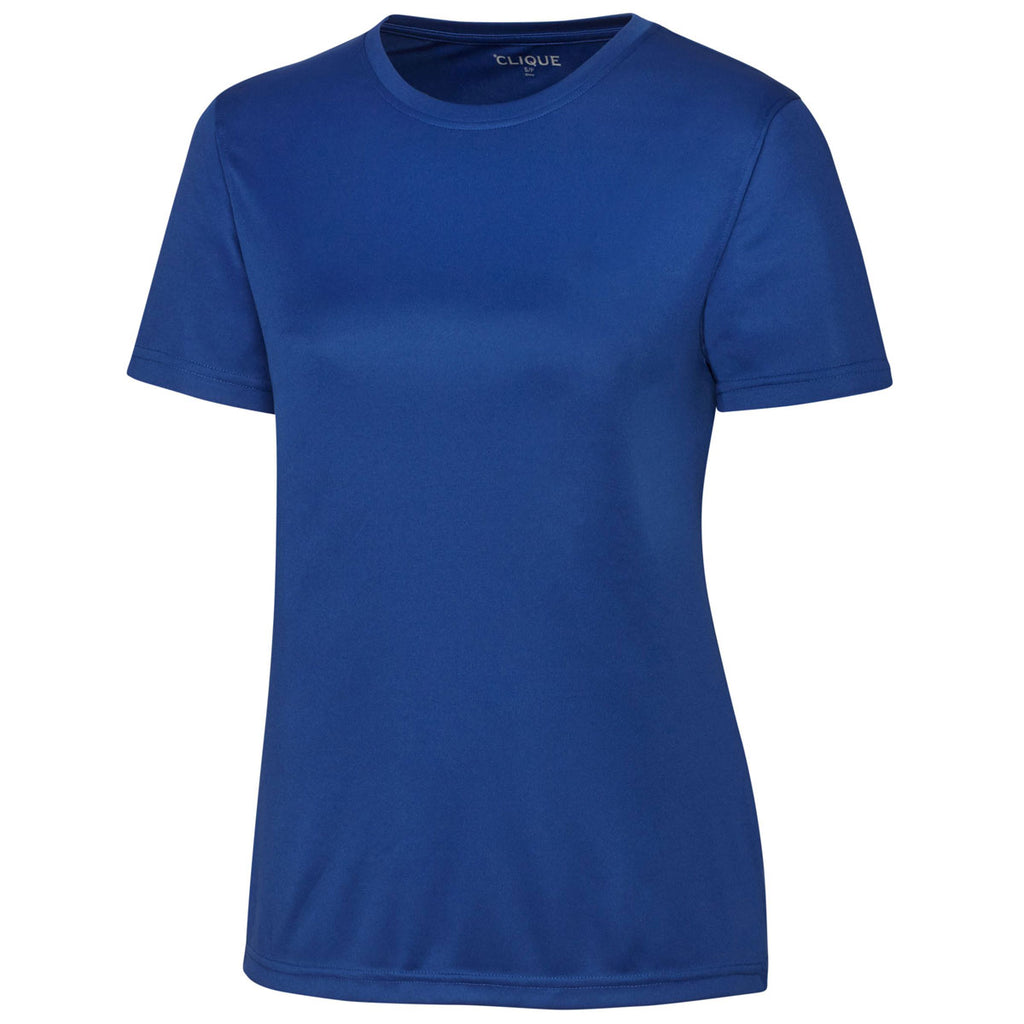 At the next company sponsored golf tournament, hand out the Clique Women's Tour Blue Spin Jersey Tee to the female members of your accomplished team. Long lasting color makes the tee perfect for frequent use in a wide variety of competitive athletic events. Designed with 100% spin-dye polyester interlock, the tee handles all of the punishment thrown at it. Add a custom logo to send the message your company stands behind high quality products and services. Open sleeves allow you to rear back and let it rip from the tees and fairways. Self-fabric neck trip adds panache to an already fashionable short sleeve shirt.Highlights