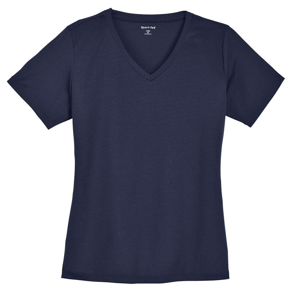 There is a 12 piece minimum on all orders for Sport-Tek t-shirts. This item will be imprinted, not embroidered.Everyone loves a T-shirt, after all. Especially if the T-shirt in question is this Sport-Tek Women's True Navy PosiCharge RacerMesh V-Neck Tee. And because you can add your custom logo to a T-shirt to enhance your brand, T-shirts are just as useful for your business as they are for your personal life.