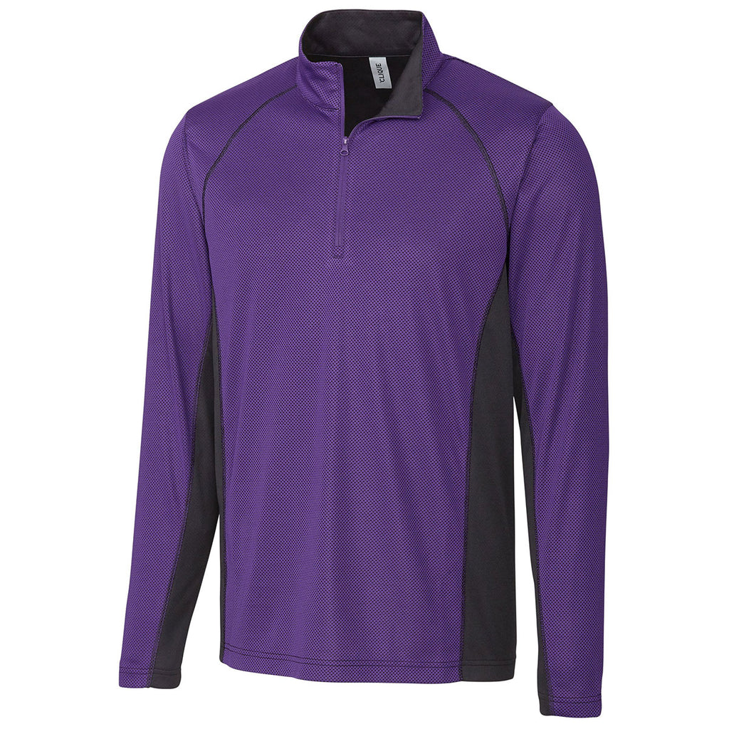 The Clique Men's College Purple Ice Colorblock Half Zip top offers a stylish clothing option, perfect for casual comfort during the weekend. With a custom logo added to the front of this shirt, you can advertise your company name on a clothing item everyone is going to want. Available in a variety of must-have colors, the men's half zip shirt comes complete with a wide array of features including 100% polyester material, mock neck with half zip feature, colorblock detailing on the side panels, and moisture wicking fabric. Order this item in bulk as it makes a wonderful employee apparel gift for your team members and a great corporate apparel gift for company events.Corresponding Women's Style:Clique Women's College Purple Ice Colorblock Half Zip