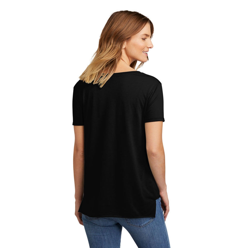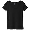 Amp up your tee collection with a custom Next Level Women's Black Festival Scoop Neck Tee. This takes the simple tee to the nest level with a scoop neck cut that provides flair. Add a company logo to use this as employee apparel or for some special employee event used for team or company building. Try out a custom logo to use for a team, organization, club, or just to add to your own wardrobe. The poly and ring spun cotton blend is soft, comfortable, and wearable with rib knit scoop neck and a relaxed fit. The raw edge creates an exaggerated drop tail hem for extra coverage.Highlights