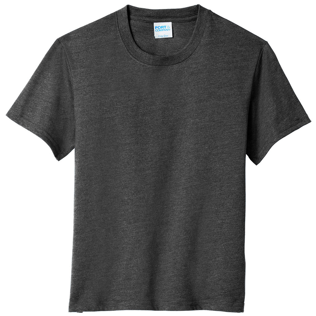 Port & Company Youth Black Heather Fan Favorite Blend Tee