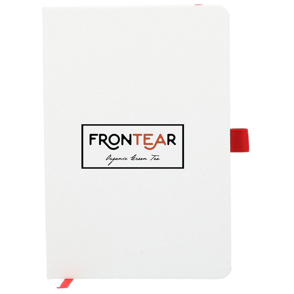Your brand's custom logo or design will make a statement when it's added to the Bullet Red Recycled Bamboo Fiber Bound Notebook. Sleek and simple in design, this portable office accessory measures 5.5" x 8.5" and includes elastic closure, a ribbon page marker, and 80 lined pages within.