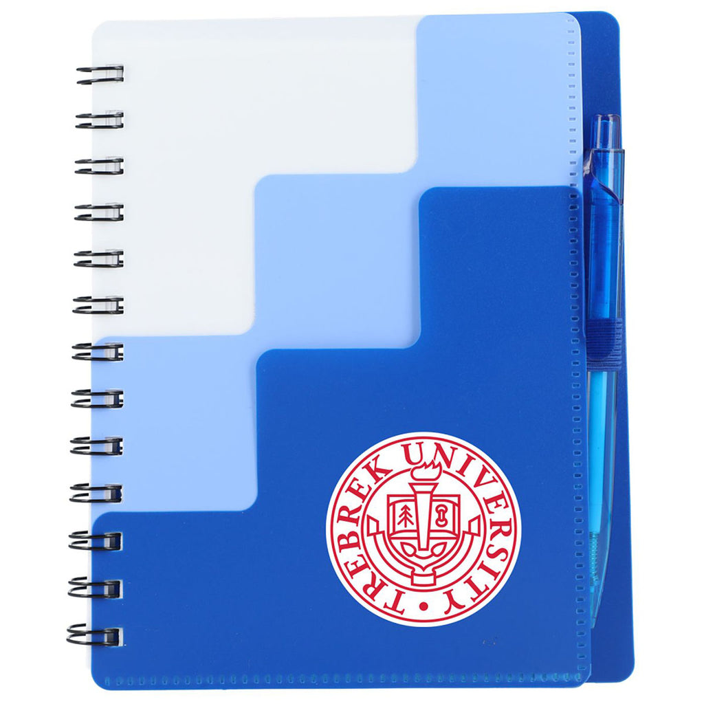Create a gift or giveaway item that shows off your company's custom logo or design by adding it to the Bullet Blue Recycled Pace Spiral Notebook W/Pen. Made from recycled materials, this notebook measures 5" X 7" and comes complete with a smooth black ink pen for added ease.