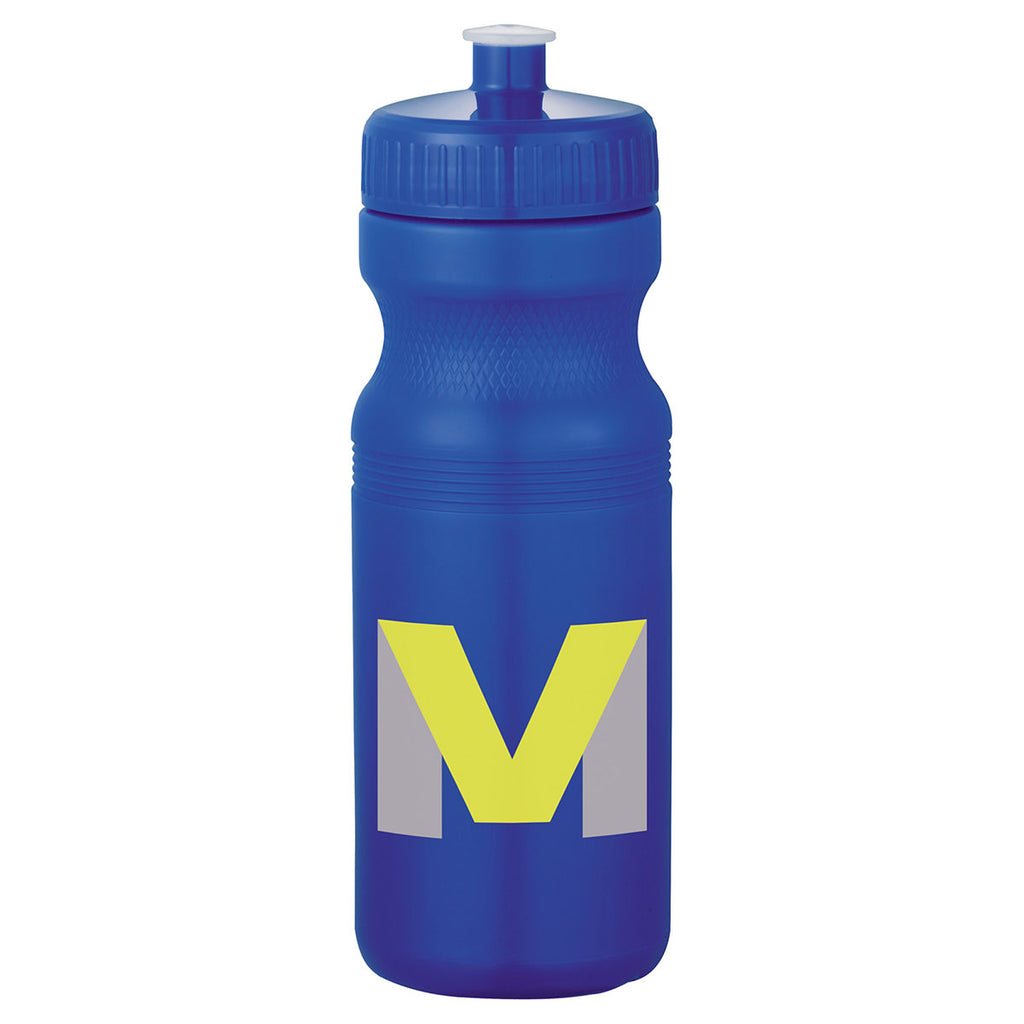Sports organizations will benefit from the Bullet Royal Blue Easy Squeezy Spirit 24oz. Sports Bottle. The flexible and contoured drinking bottle has room on the bottom for a corporate or sports team logo. The push/pull top color matches up with the rest of the body. The design is useful for all sports clubs, but it is also a good giveaway gift that doubles as a promotional tool.The minimum order for this product is 500 pieces.