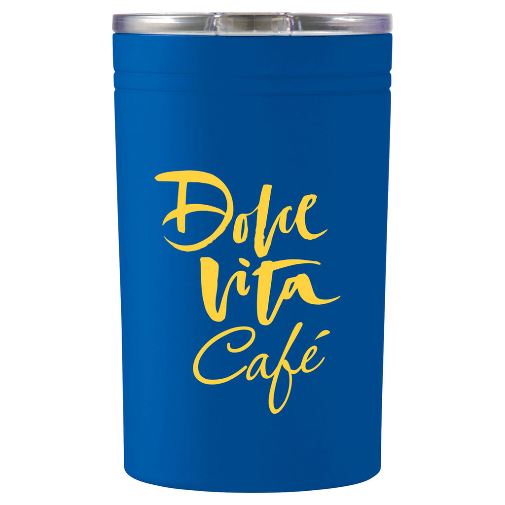 The vacuum insulated Bullet Royal Blue Sherpa 11oz. Vacuum Tumbler & Insulator keeps drinks cold or hot throughout the day. Your custom logo printed on its body will stay intact no matter what goes inside the tumbler. Add this tumbler to your list of giveaway items for your employees during special events or hand them out as a promotional tool at recruiting events.The minimum order for this product is 50 pieces.