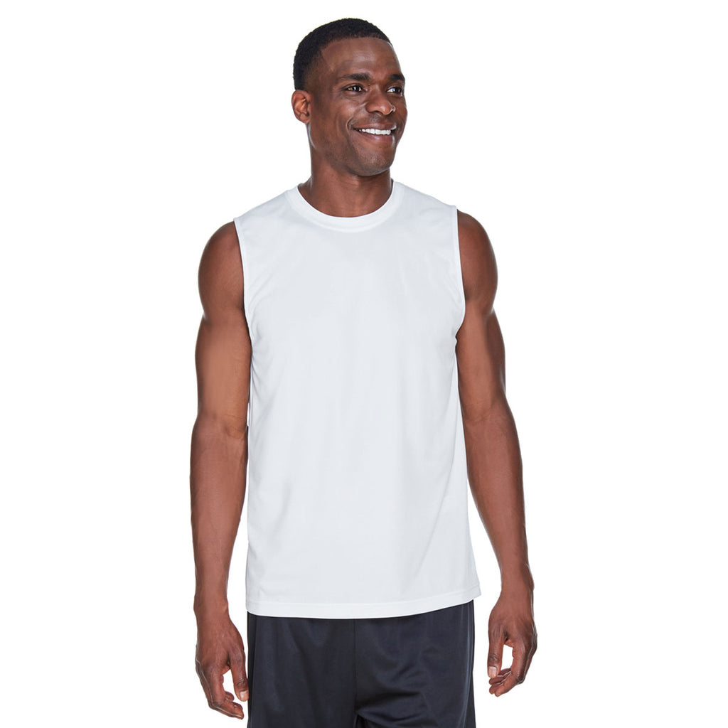 Team 365 Men's White Zone Performance Muscle T-Shirt is great for those that need to be outdoors in warmer weather. Available with custom screen print to showcase your company design, the muscle shirt would make comfortable and functional employee apparel for those who do lawn care, serve outdoors, or even those who lifeguard. With numerous colors to choose from the performance muscle tee offers moisture wicking and UV protection for those overly warm days spent focused on work. The 100% polyester fabric would even make this an ideal choice for trade shows and events. Get your company noticed with a customized shirt, design yours today.Corresponding Women's Style: Team 365 Women's White Zone Performance Racerback Tank
