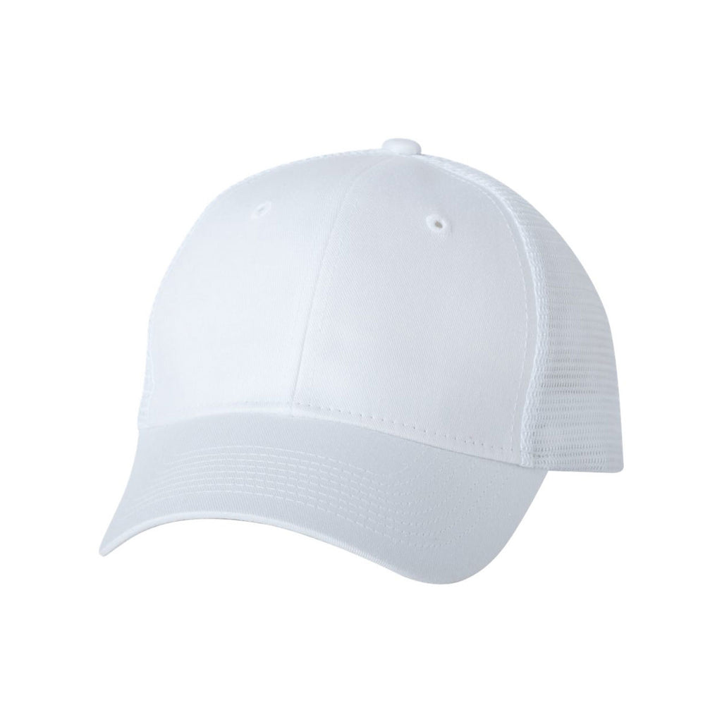 Say a hearty "10-4 good buddy" by ordering the embroidered Valucap White Twill Trucker Cap. The stylish hat contains 80% cotton and 20% polyester to deliver the powerful one-two fashion punch of super softness and long lasting durability. Designed with six panels to create a firm structure, the mid profile cap makes the ideal headwear for softball players who need clear line sights on fly balls. The pre curved visor and snap back closure keep the hat comfortably snug on your head. Add a custom logo on the large imprint area to attract more potential customers.Highlights