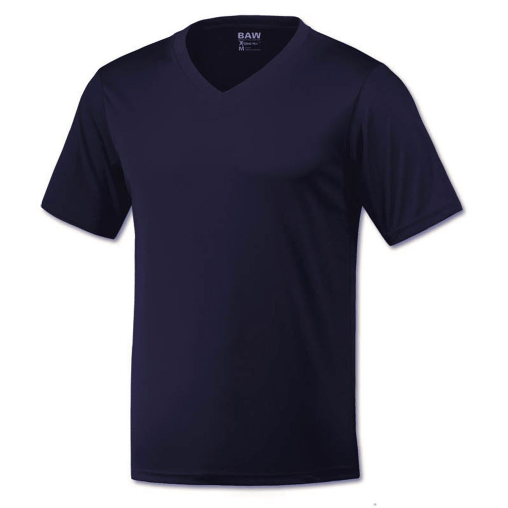 Does a man ever have enough V-neck short sleeved shirts? When you hand out the BAW Men's Navy Xtreme Tek V-Neck Short Sleeve Shirt with your custom logo on it, it will be a welcomed gift. It is ideal to give to contest winners, gift with purchase, or to give to a new prospective customer. Whenever he wears it, he will definitely think about your company. It is made of polyester Xtreme-Tek and the fabric has moisture wicking properties. This makes the shirt feel great against the skin and keeps the wearer cool and dry. This shirt also offers UV protection and has an anti-bacterial treatment.Highlights