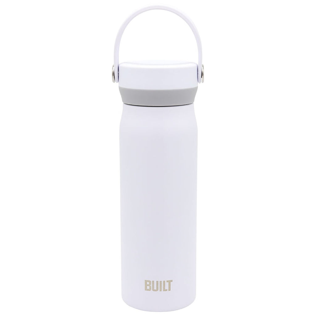 This Built White 20 oz Cascade Bottle with Handle Lid makes it easy to carry your favorite beverage and stay hydrated. 18/8 double-wall stainless steel, vacuum-sealed construction maintains the optimal temperature of cold beverages. Keeps your drinks cold for 8 hours, hot for 4 hours. Features a silicone grip for comfortable hold. Threaded lid easily opens and closes for the leak proof seal.