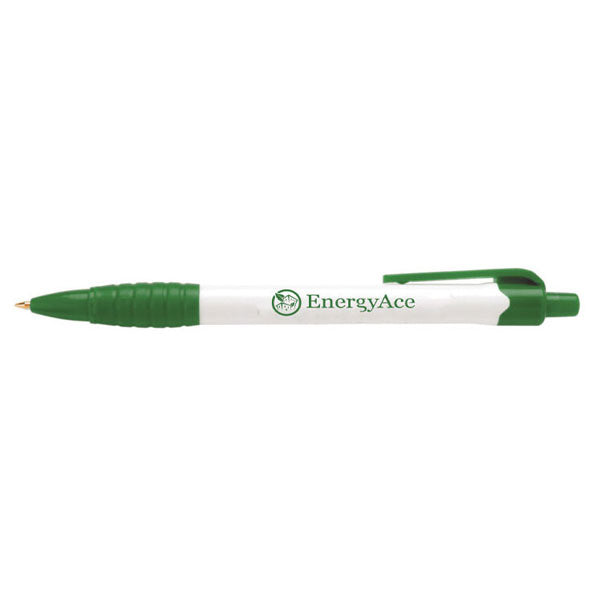 Add character to your promotional campaigns with the Hub Pens White/Green Palmiro Pen available in vibrant trim colors. It features a push-action retractable mechanism and embodies a white barrel that will show off your company's logo or name loud and clear. Ribbed grip ensures lasting comfort while you're tracking the events that happen in a day.