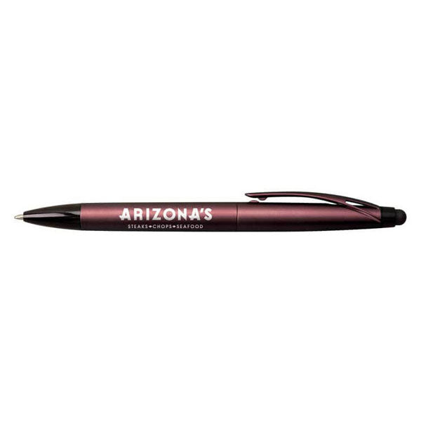 Corporate colors and sophisticated eye-catching metallic finish transform this twist retraction Hub Pens Burgundy JayKay Stylus ballpoint pen into a full-grown corporate writing instrument. It strokes smoothly on touchscreens thanks to its built-in stylus. A generous imprint area ensures your company's logo or name stands out and gets noticed with every pen stroke.
