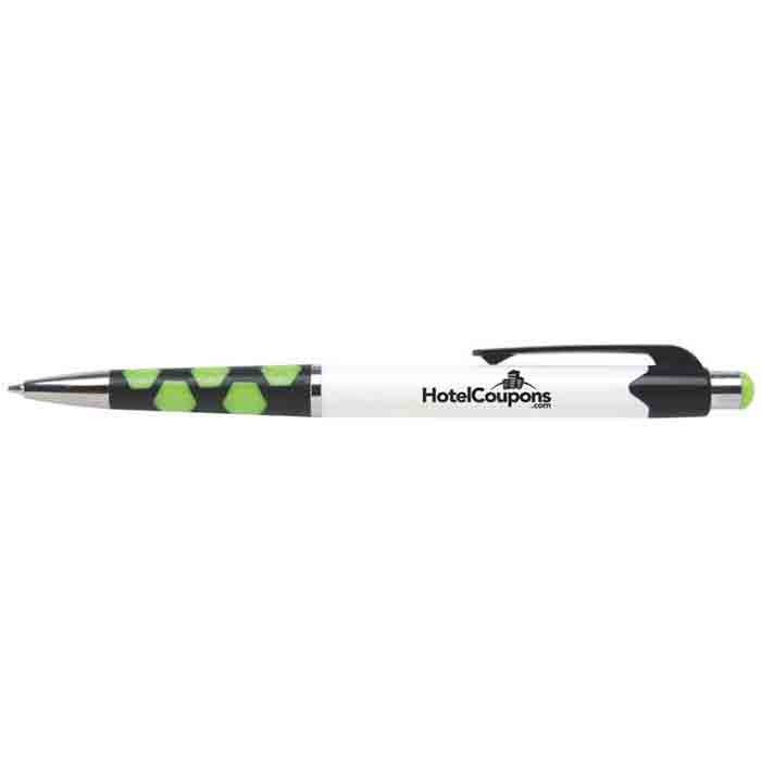 Hub Pen typically creates a large, imprint area on its selection of Hub Pens Neon Green Mardi Gras Hex Pen to produce the ultimate promotional gift for savvy marketers. Simply attach a custom logo on the large imprint area and enjoy increased awareness of your company during weeklong business trips. Dependable push retractable action always delivers the rugged tip that applies even coats of ink on paper and other writing surfaces. As the most colorful addition to the Hub Pen inventory, you can expect to enjoy ultra-smooth writing for all business occasions. Logoed corporate gifts offer you an affordable way to generate buzz for your products and services.