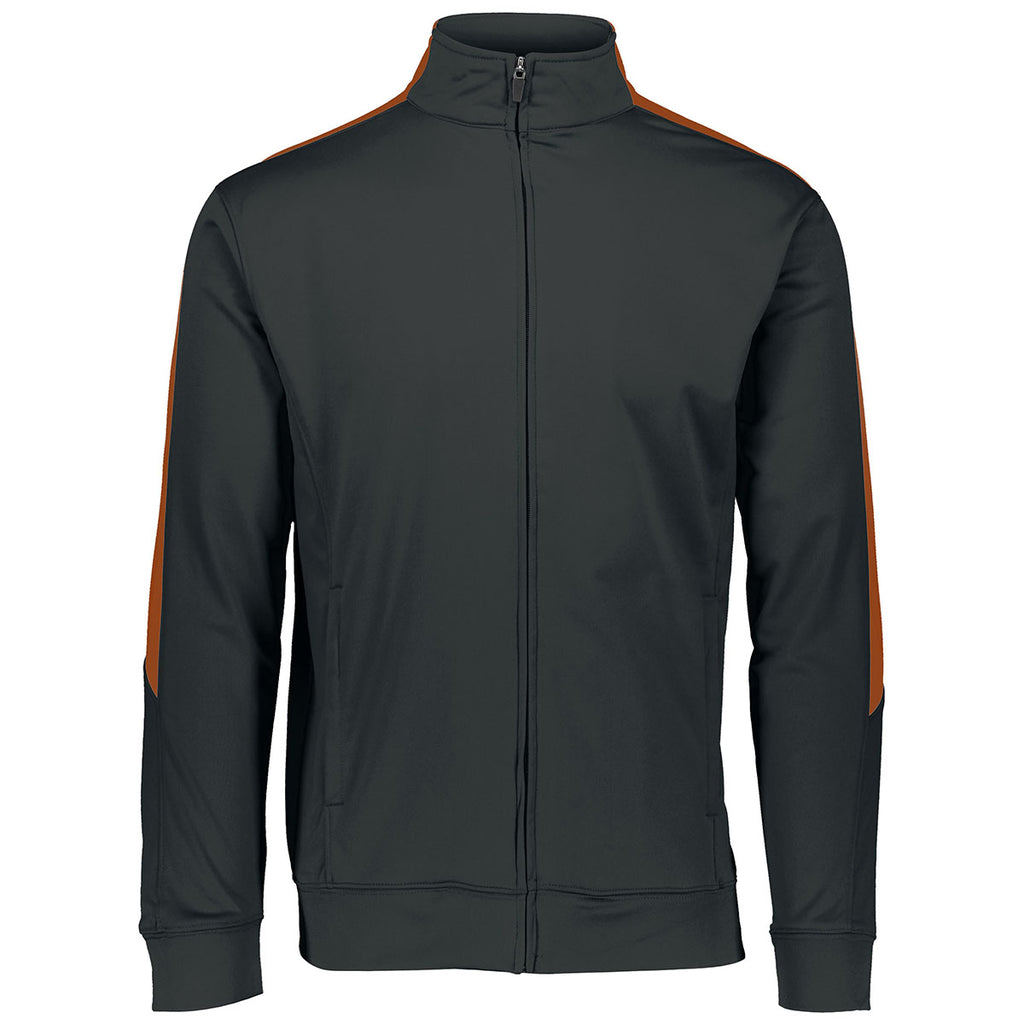 Augusta Sportswear Men's Black/Orange Medalist Jacket 2.0 will carry your custom logo like a winner. The high collar full-zip has a partial stripe down each sleeve for flair. Add a corporate logo to give as gifts or incentives to get or stay healthy as a company. Great for workouts, daily wear, or just to stay warm on a chilly day. Place an order today.Highlights