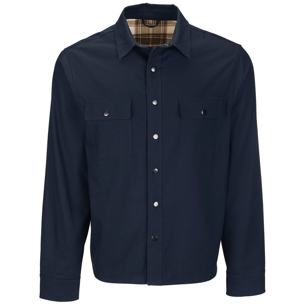 Get down to business with a custom Vantage Men's Navy Boulder Shirt jacket in dark grey or taupe green. The rugged, yet modern styling adds to the versatility of this flannel lined shirt jacket that is easily layered on the coldest of days. Perfect as part of employee apparel for those who have to brave the great outdoors, this 100% cotton canvas has a snap front closure, self goods spread collar, snap closure cuffs, and dual chest flap pockets for your phone and other small items. Your corporate embroidery will stand out on these shirt jackets that will stand up to all you through at them.Corresponding Women's Style: Vantage Women's Navy Boulder Shirt Jacket