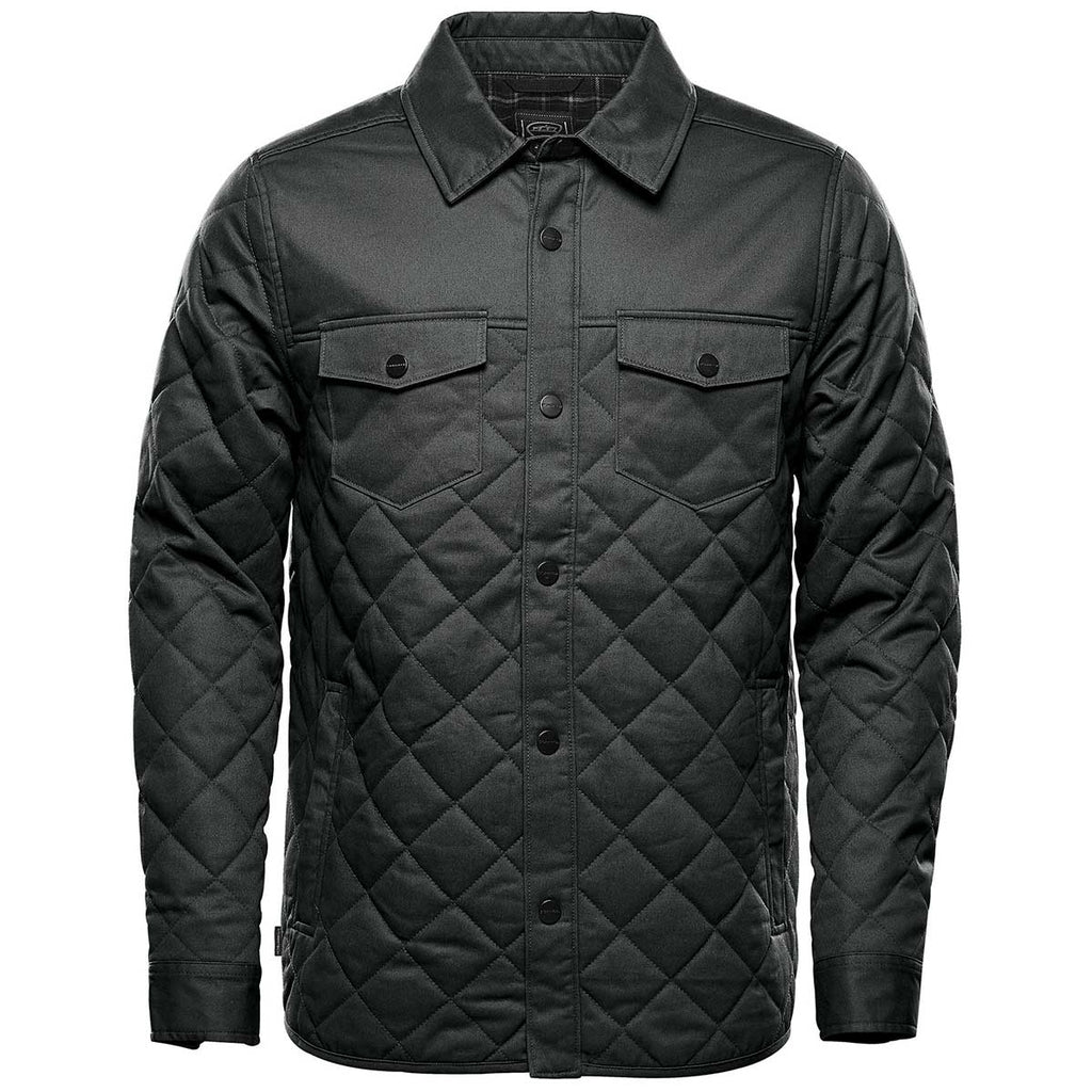 Enjoy a custom embroidered Stormtech Men's Graphite Bushwick Quilted Jacket when the temperature takes a downward turn. This sleek jacket will display your company logo boldly whether use as workwear or even as a corporate gift. The quilted poly-fill jacket has a snap front for closure and zippered hand warmer pockets to help keep you warm. The attached hood protects you from the wind as you go about your work ay or enjoy some outdoor fun with family and friends.