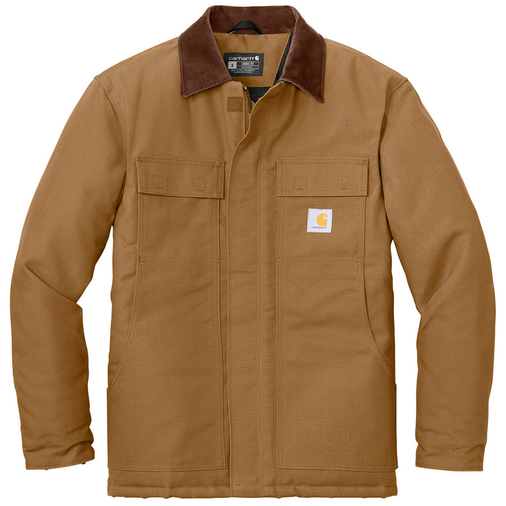 Design a custom logo for the Carhartt Men's Carhartt Brown Duck Traditional Coat. This coat is made for those who work and play hard in life. Gear up for the cold with the wind fighter technology and quilted nylon lining. Perfect for hunters, fishermen, and those who work outdoors. Place an order today because these will go fast.This product can only ship within the United States and Canada.