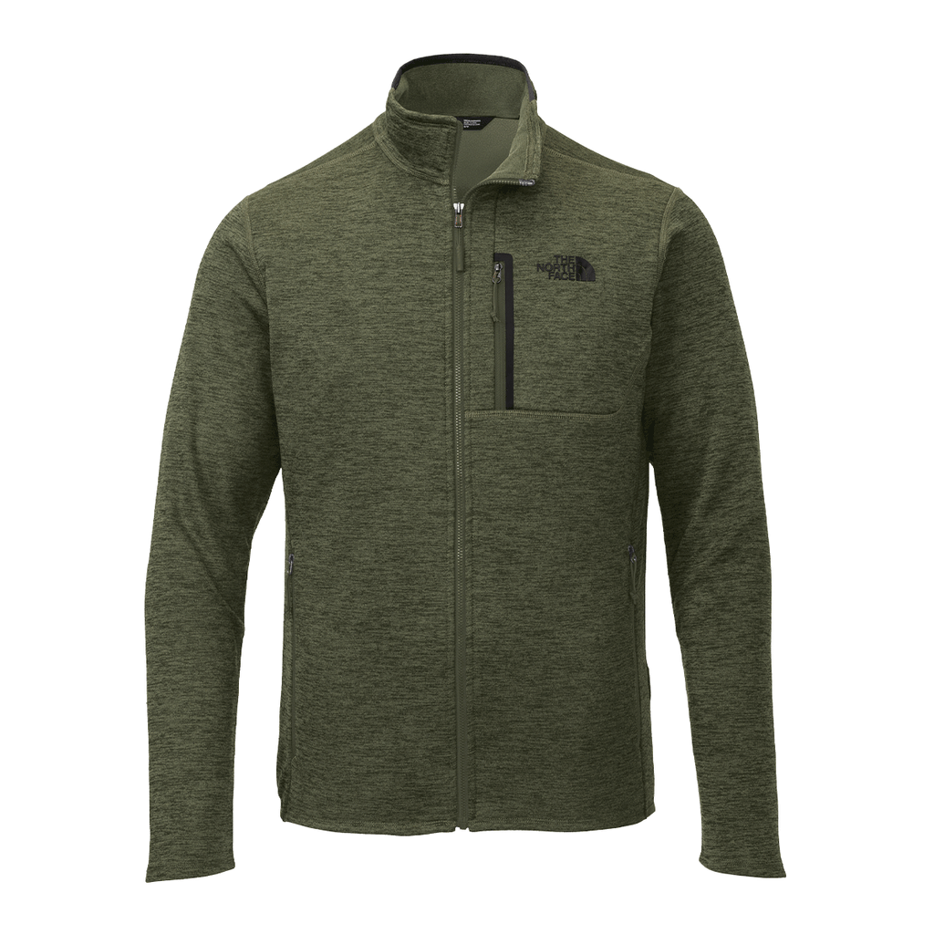 The sleek, custom look created by The North Face Men's Four Leaf Clover Heather Skyline Full-Zip Fleece Jacket is unmatched. Add your corporate embroidery to the polyester and elastane blend to create a stellar employee gift or end of year gifts for loyal customers. The stretch, peached faced fleece has a brushed interior for added comfort and a comfortable fit whether hitting a hiking trail or pounding the pavement selling goods. The midweight fabric helps regulate body temperature while attending team events or corporate outings. Choose a corporate embroidery that best fits your needs and place an order right away to be prepared for your next scheduled happening.