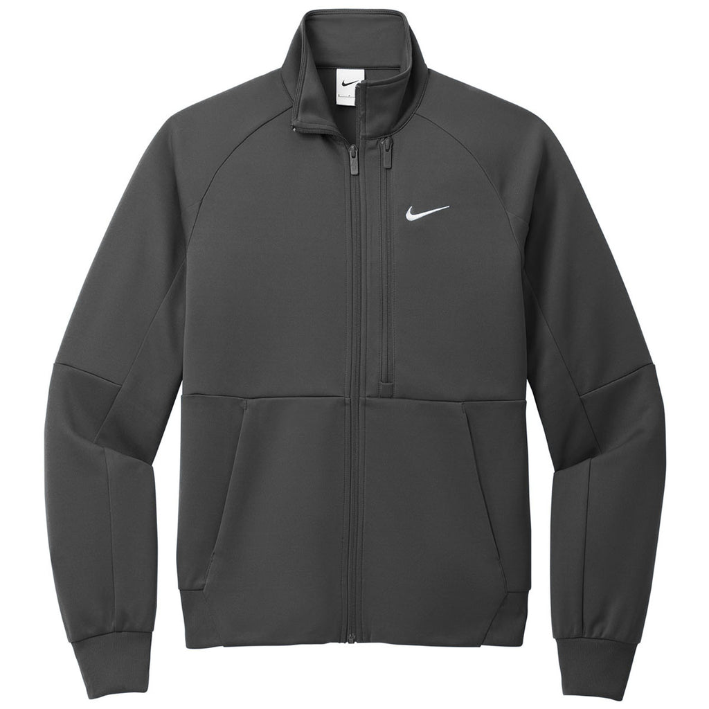 The Nike Men's Anthracite Full-Zip Chest Swoosh Jacket with a custom logo is an ideal option for creating an overall look for yourself and others. The Nike-designed jacket was created with sustainability in mind with a reverse coil zipper and vertical chest pocket, making it perfect for the morning commute or chilling with friends after work. Place your order today.
