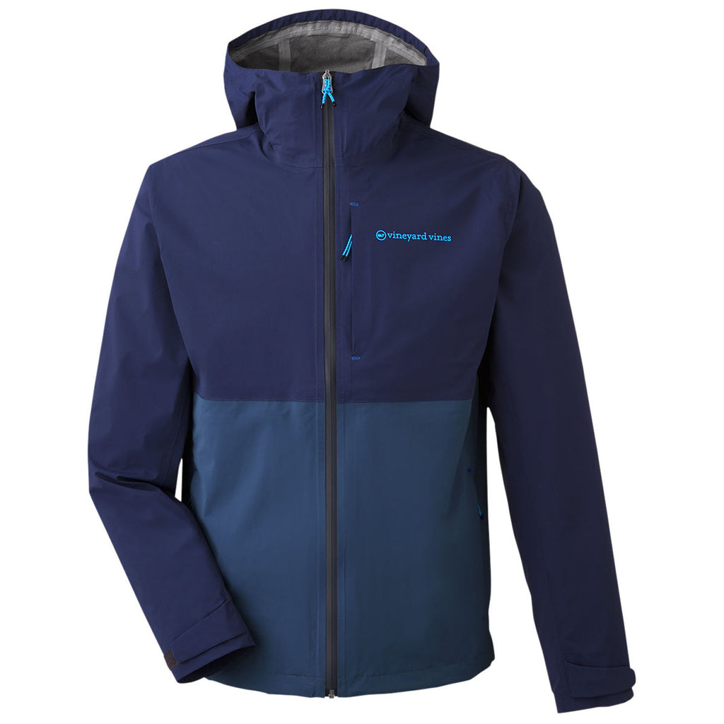 Add your custom logo to the Vineyard Vines Men's Blue Blazer On-The-Go Packable Rain Shell. This jacket offers the protection your need with the convenient option to pack it into itself when no longer needed. Great for camping, sporting events, or any outdoor time. Place an order today before these sell out.This product cannot ship outside of the United States.