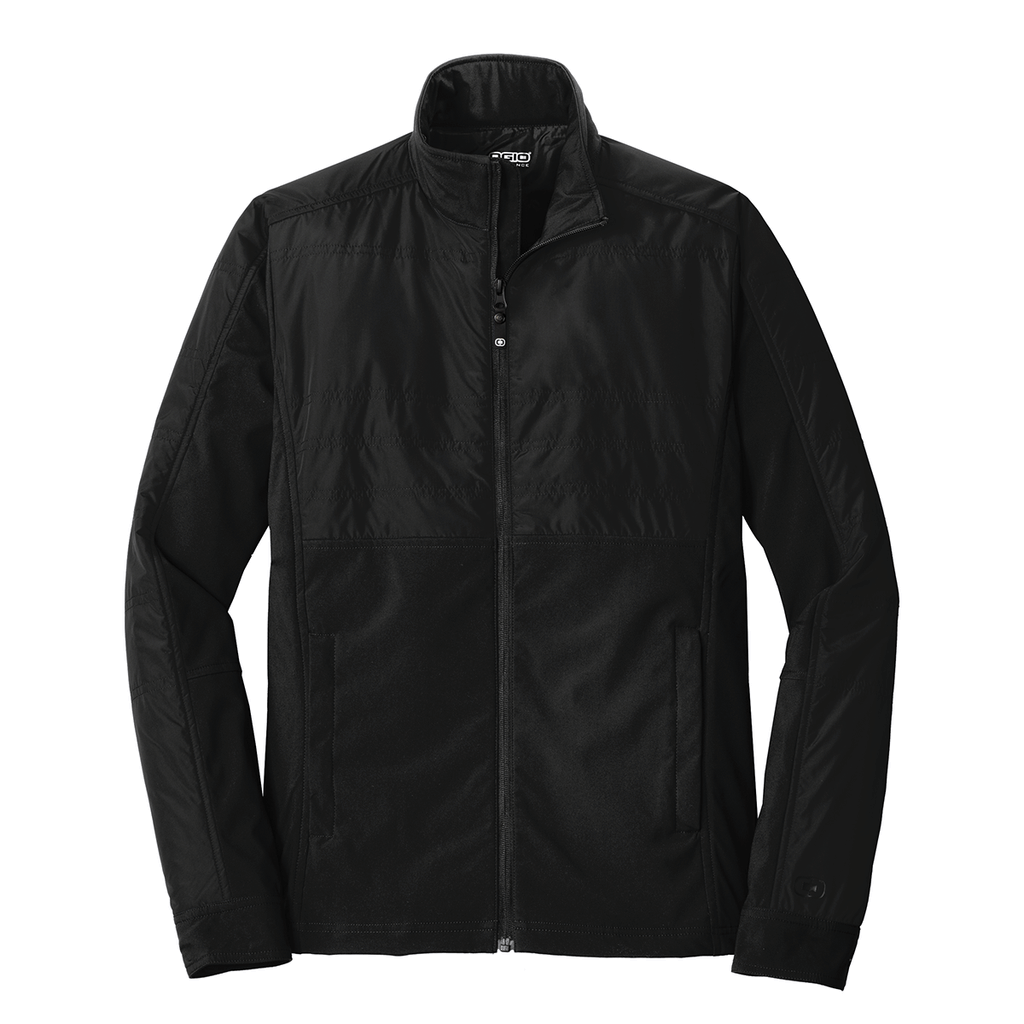 OGIO Men's Blacktop Edurance Brink Soft Shell with a company logo is a simple way to keep staff looking their best while staying protected. Made of a poly woven shell bonded to a poly knit back with insert for water and wind resistance, this shell has a full front zip with zippered pockets and set-in sleeves. Great for cooler autumn days.