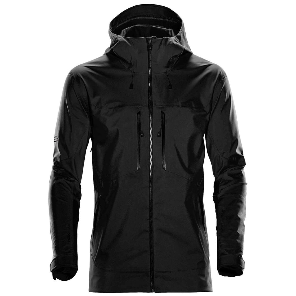 The Stormtech Men's Black Synthesist Stormshell was made to perform in wet, cold weather. Featuring sealed seams, a YKK AquaGuard Front Zipper and laminated polyester shell, this jacket is both breathable and waterproof. The articulated and reinforced elbows and shoulders, along with the abrasion resistant hand pockets and temperature rating between 14 Degree F and 50 Degree F, make these jackets an employee apparel choice that will last for seasons to come. Finished with a multi-adjustment hood, pit zips, core venting, functional sleeve pocket and room at the left and right chest for custom company logo embroidery, this is an corporate gift option that your team would be thrilled to receive.Corresponding Women's Style: Stormtech Women's Black Synthesist Stormshell