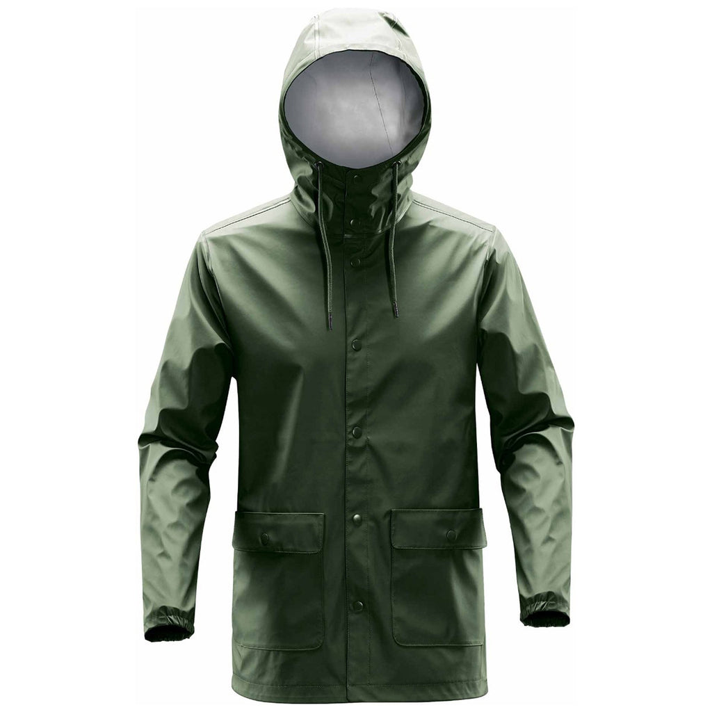 Brave the rain in comfort and style with a custom Stormtech Men's Earth Squall Rain Jacket. Add a company logo screen print to the great fitting, extra-length, fully lined waterproof raincoat. The matte finish means this is an easy choice for any environment whether being used as corporate apparel or a day out with the family. Extras include welded waterproof seams, flapped snap closure hand pockets, adjustable elasticized cuffs, and underarm and back venting for easy wear. The classic style means you will look your best, even when the weather is at its worst. Place your order today.Corresponding Women's Style: Stormtech Women's Earth Squall Rain Jacket