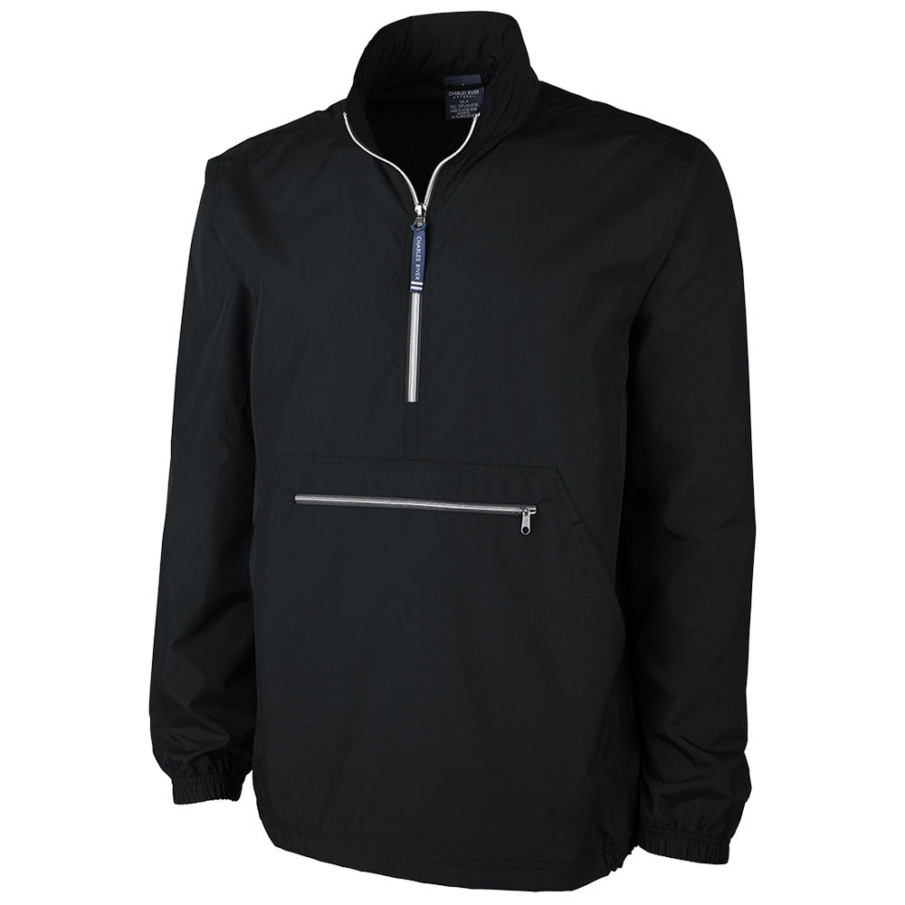 Choose your embroidery for the Charles River Men's Black Riverbank Pack-N-Go Pullover to create a look that is ready for adventure. The Softex polyester is wind and water-resistant, making it perfect for travel. Use when hiking, camping, or on the golf course when a pop-up shower threatens the game. Once you are finished, pack the pullover away in its own pouch pocket. Place an order today.Highlights