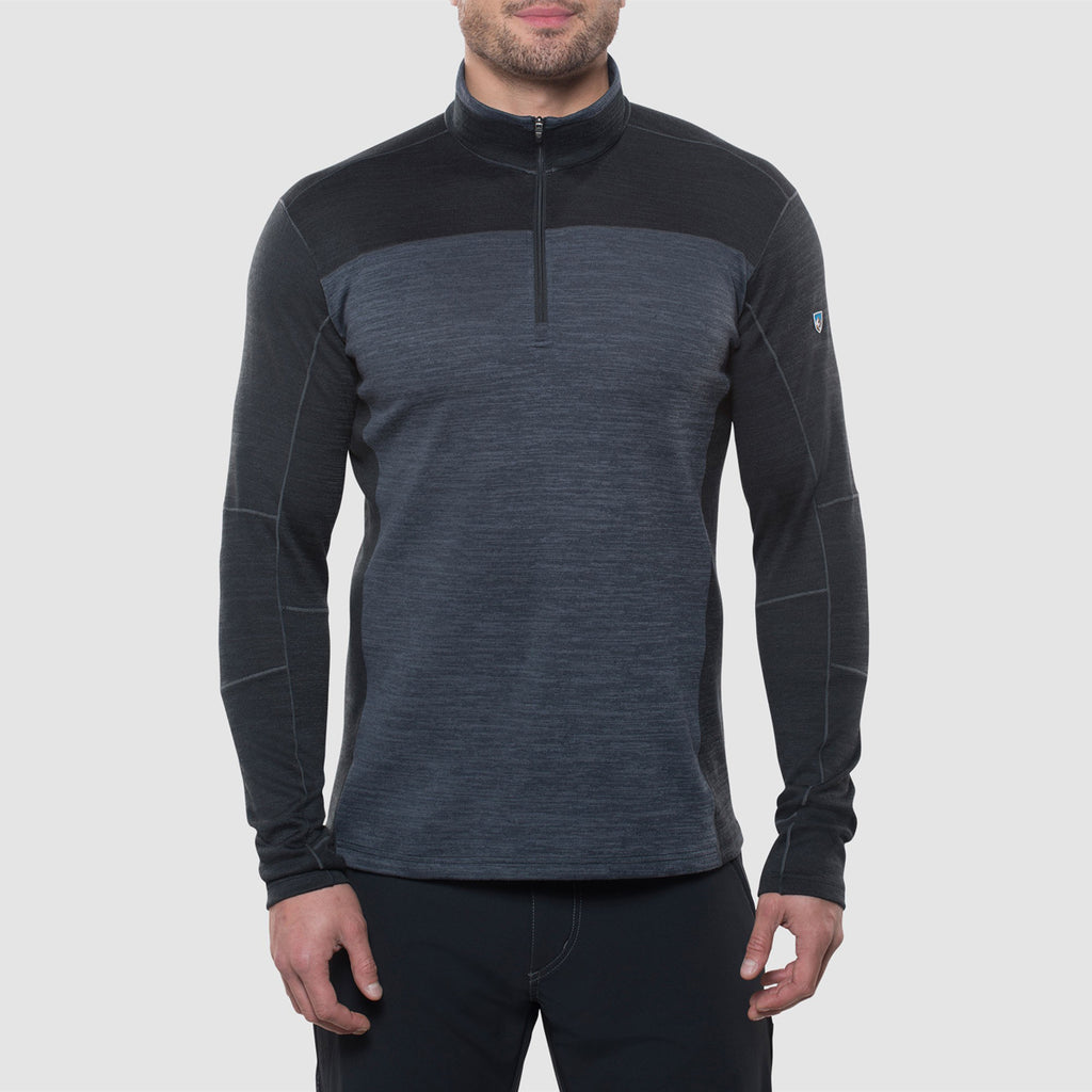 Low bulk Dynamik stitching increases the stretching capability of the embroidered KUHL Men's Black/Koal Ryzer quarter zip from KUHL. The additional stretched fabric allows you to gain access to tight spots in your yard for the completion of home improvement projects. Layer the quarter zip under a soft shell jacket or wear the stylish corporate garment as an outer layer. Outstanding breathability makes the KUHL Men's Black/Koal Ryzer ideal for outdoor enthusiasts who live in humid climates. Signature KUHL thumbholes complete the superior design features that grab the attention of professional peers at business conventions. Add a custom logo to create more awareness for your company everywhere you go.Highlights