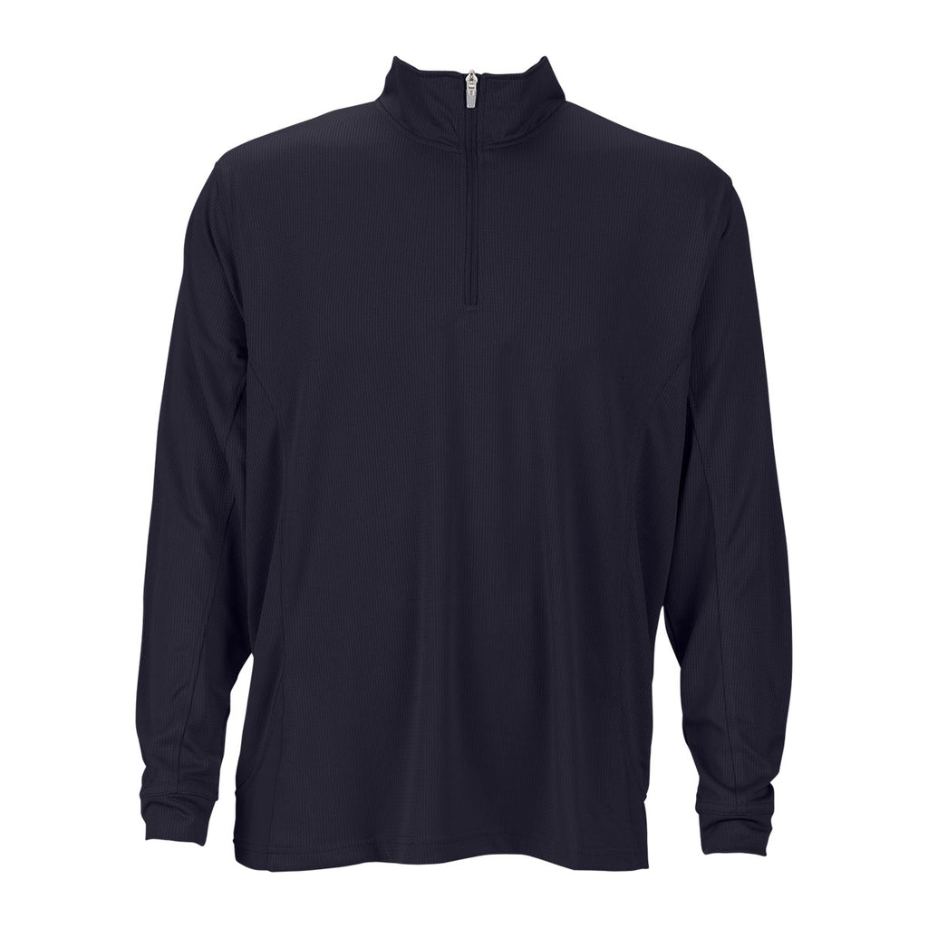 Micro mesh designed for the embroidered Vantage Men's Navy Mesh 1/4-Zip Tech Pullover encourages air to circulate around and through the highly durable fabric. Constructed with hard to tear polyester, the quarter-zip pullover withstands the worst punishment delivered from participating in high octane sports competitions. The blocked side insets and right side seam pocket add panache to a pullover you can wear for all occasions. Put the pullover on for casual corporate apparel Fridays and keep it on after work while enjoying a quiet diner at your favorite restaurant. Add your company logo and enjoy the financial reward of more sales.Highlights