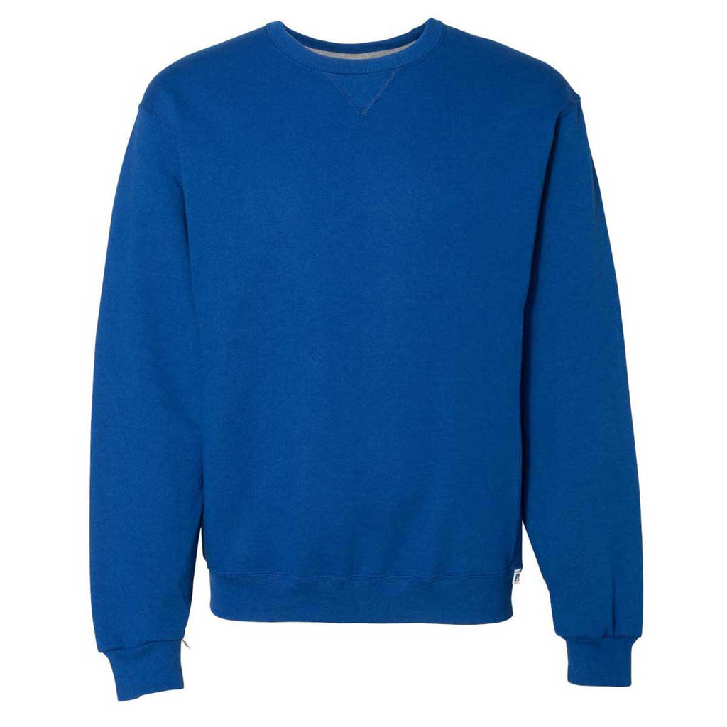 Keep warm in a screen print Russell Athletic Men's Royal Dri Power Crewneck Sweatshirt. This heavier cotton polyester blend offers Dri-Power moisture management properties with ribbed knit cuffs and waistband. Add a custom logo to this sweatshirt to offer as a custom gift or a company logo to promote your business or cause at an event. The classic sweatshirt is comfort wear at its best and appropriate for chilling at home, hanging with friends, or hitting the gym hard. An easy to wear option that can be enjoyed by all who chose to purchase it.Highlights