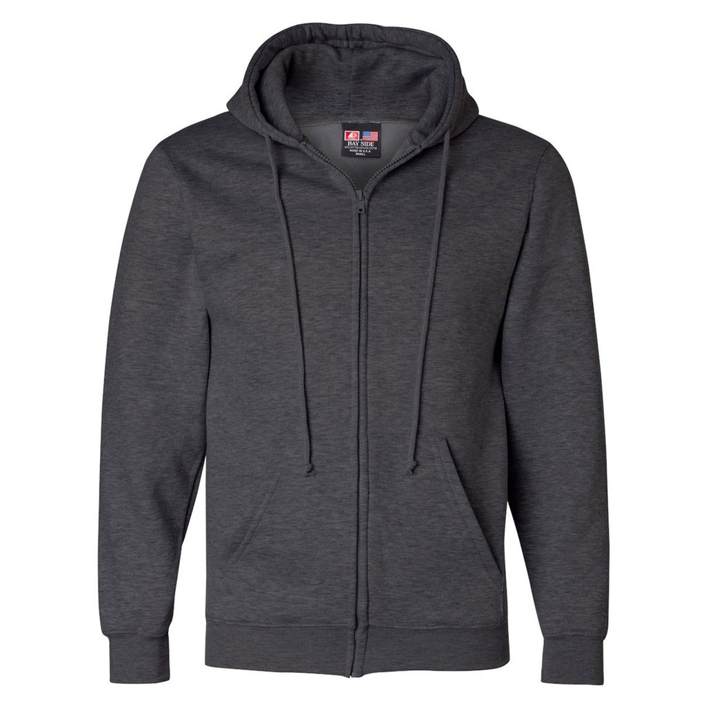 Bayside Men's Charcoal Heather USA-Made Full Zip Hooded Sweatshirt
