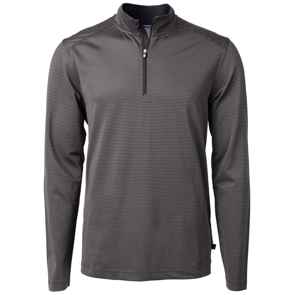 Cutter & Buck Men's Black/Elemental Grey Virtue Eco Pique Micro Strip Recycled Quarter Zip