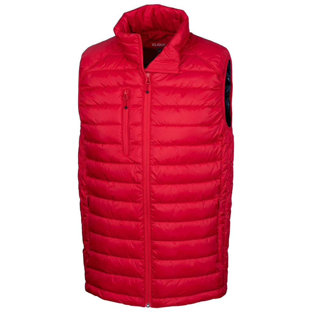 The Clique Men's Red Hudson Vest is a stylish way to stay warm. This custom logo men's vest comes in a variety of trendsetting colors and offers welcome features including 100% polyester material, water resistant quilted shell, zippered front pockets, and adjustable drawcord hem. Put your company logo on this men's vest and hand it out to your employee apparel as gift for a job well done. You can also order some to keep on hand for upcoming golf events, trade shows, and other corporate events.Corresponding Women's Style:Clique Women's Red Hudson Vest