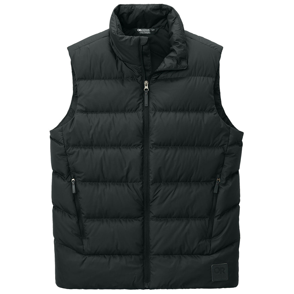 Layer up in a custom Outdoor Research Men's Black Coldsnap Down Vest. This quilted design is engineered with extra insulation in a lightweight feel. Water and wind-resistant, the vest is great for outdoor fun like climbing, hiking, and camping. Use as a middle layer or outer layer as needed. Place your order right away.Corresponding Women's Style: Outdoor Research Women's Black Coldsnap Down Vest