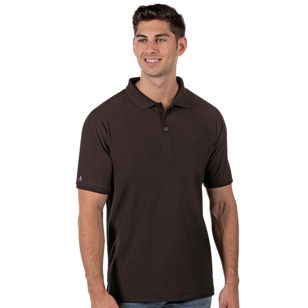 Design custom embroidery for the Antigua Men's Brown Legacy Short Sleeve Polo Shirt for a clean, simple look that is great as employee apparel or corporate apparel as needed. The 100% polyester polo is made with Desert Dry moisture wicking pique knit with UPF 50+ sun protection for those long days spent at a golf meeting or even longer days in the office. Add a company logo to use as employee apparel or client gifts that show affiliation. The flat knit collar and cut and sew cuffs complete the look that can go almost anywhere. Place an order today so you do not miss out.Highlights